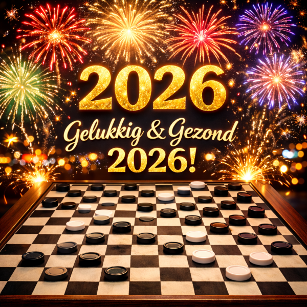 Damclub Schiedam wenst alle dammers en hun dierbaren een mooi nieuw damjaar, waarin AI wellicht nog iets bijgeleerd kan worden over de grootte van een dambord en realistische standen.